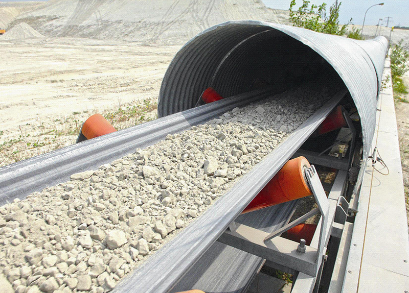 石灰石經(jīng)粉碎后,需長(zhǎng)距離從礦山運(yùn)輸?shù)剿鄰S,百瑞??筛鶕?jù)現(xiàn)場(chǎng)工況定制化設(shè)計(jì)耐磨性能優(yōu)異的長(zhǎng)距離輸送帶;
