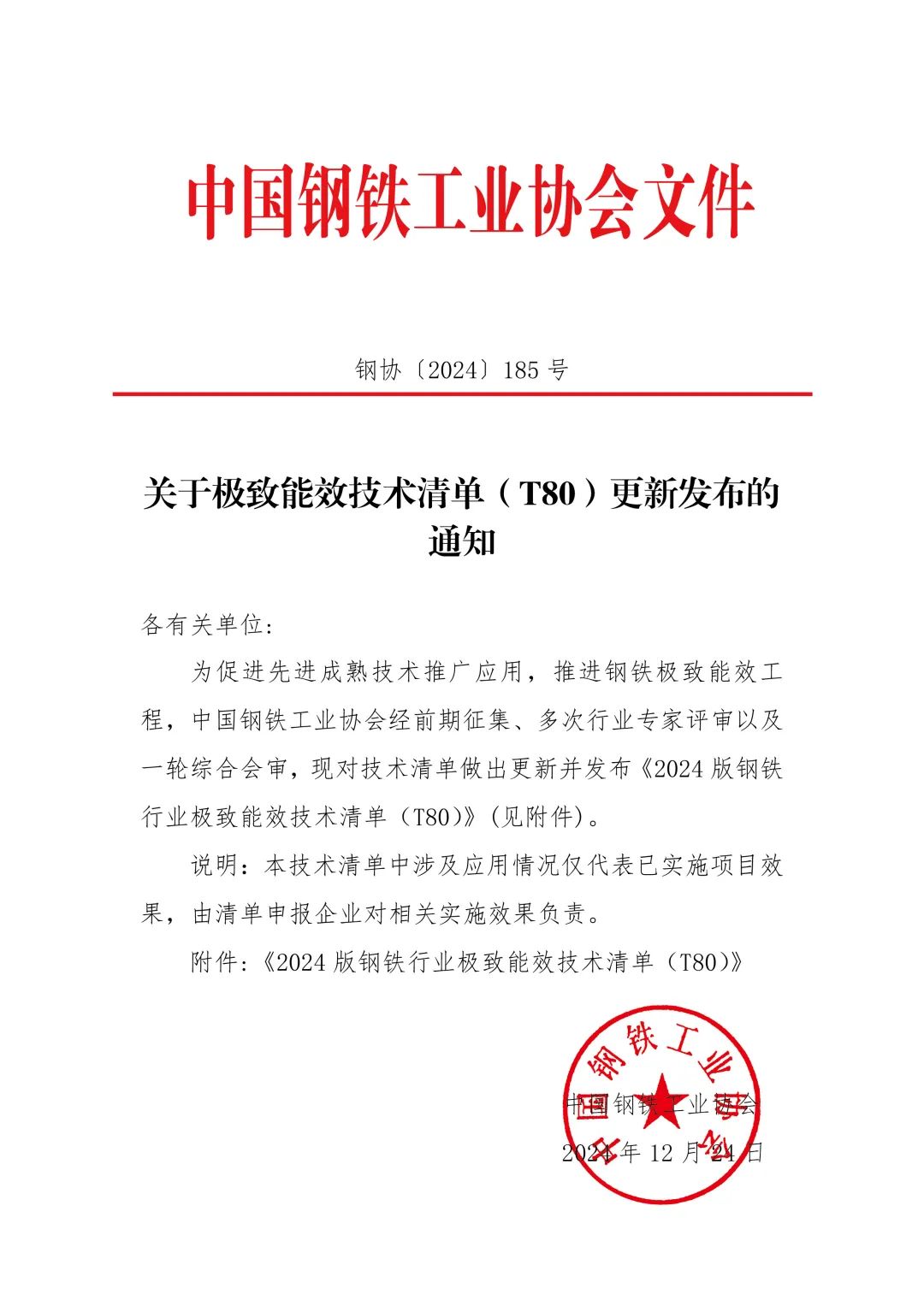 為推進(jìn)鋼鐵極致能效工程、持續(xù)提高產(chǎn)業(yè)含“綠”量,由中國鋼鐵工業(yè)協(xié)會(huì)經(jīng)征集、行業(yè)專家評(píng)審以及會(huì)審的《2024版鋼鐵行業(yè)極致能效技術(shù)清單(T80)》于近日正式發(fā)布。百瑞福負(fù)壓氣流抑塵系統(tǒng)作為轉(zhuǎn)運(yùn)點(diǎn)除塵領(lǐng)先技術(shù),入選T80能源公輔類第78項(xiàng)。