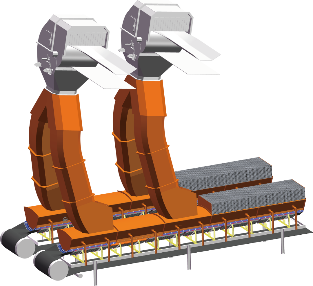 通過上集料器、曲線溜槽、給料匙三段曲線的組合設(shè)計(jì)