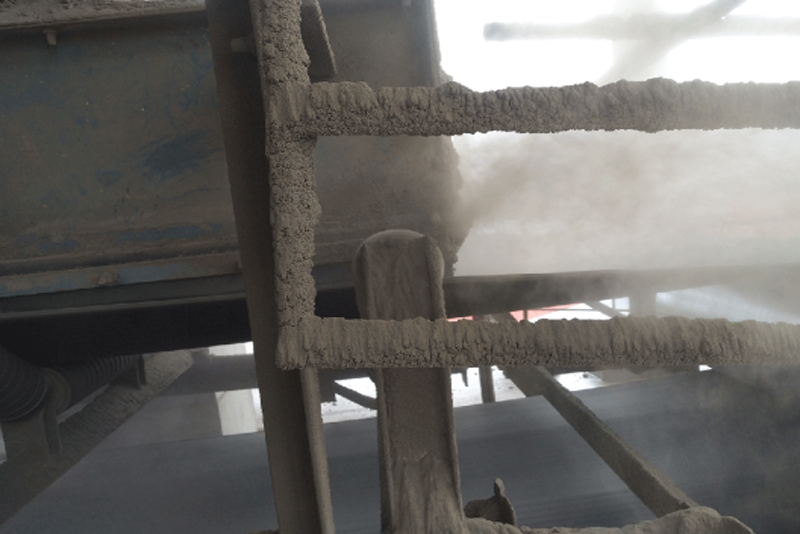 在物料轉(zhuǎn)運系統(tǒng),若物料黏性較大、含水率較高則常易發(fā)生回程帶料堆積嚴重、卸料困難清潔難度大、輸送效率降低等問題若輸送帶長期處于帶體粘料、回程帶料運行狀態(tài)不僅會增加